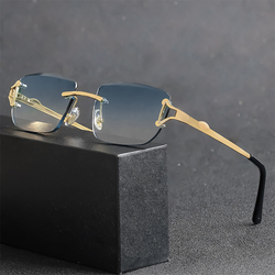 HBK óculos sem aro homens luxo marca quadrada designer óculos ouro Alloy Frame Sunglasses diamante corte